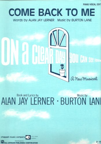 Sheet Music for Come Back To Me from the Musical On A Clear Day You Can See Forever by Alan Jay Lerner and Burton Lane. Piano/Vocal edition. Moderate to Advanced difficulty.